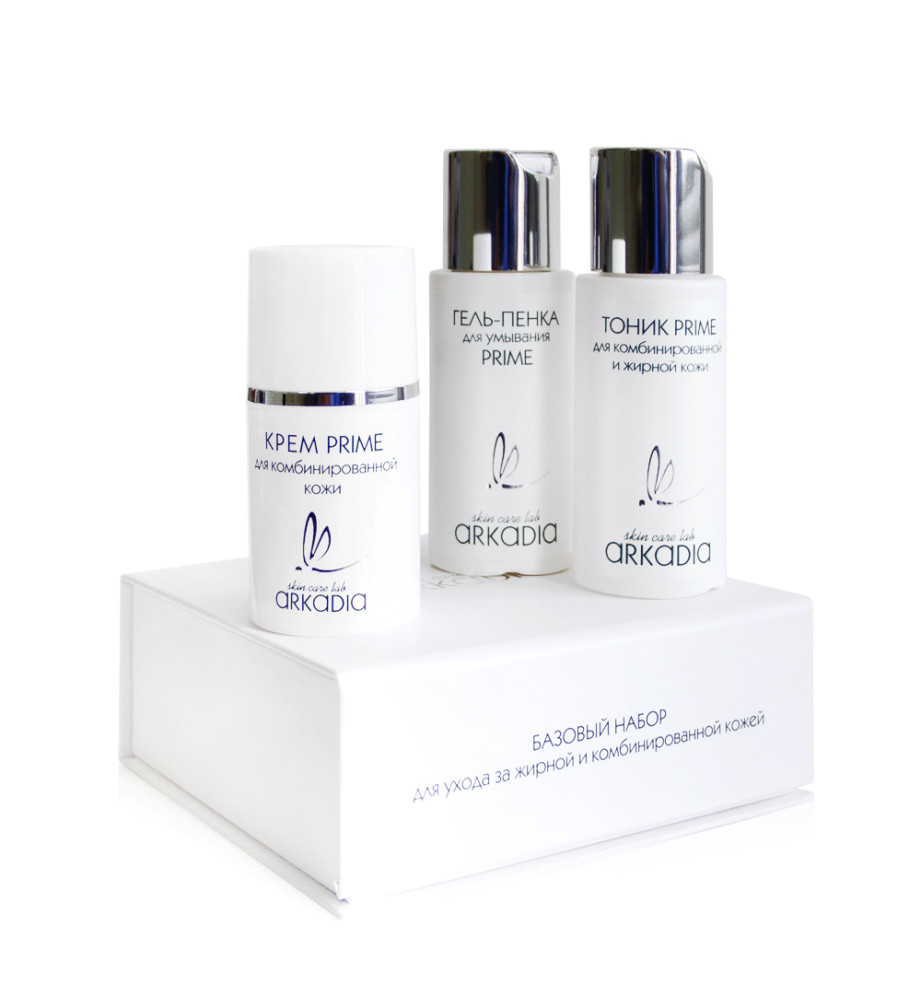 Arkadia Базовый набор для ухода за жирной и комбинированной кожей, 50/50/15 мл