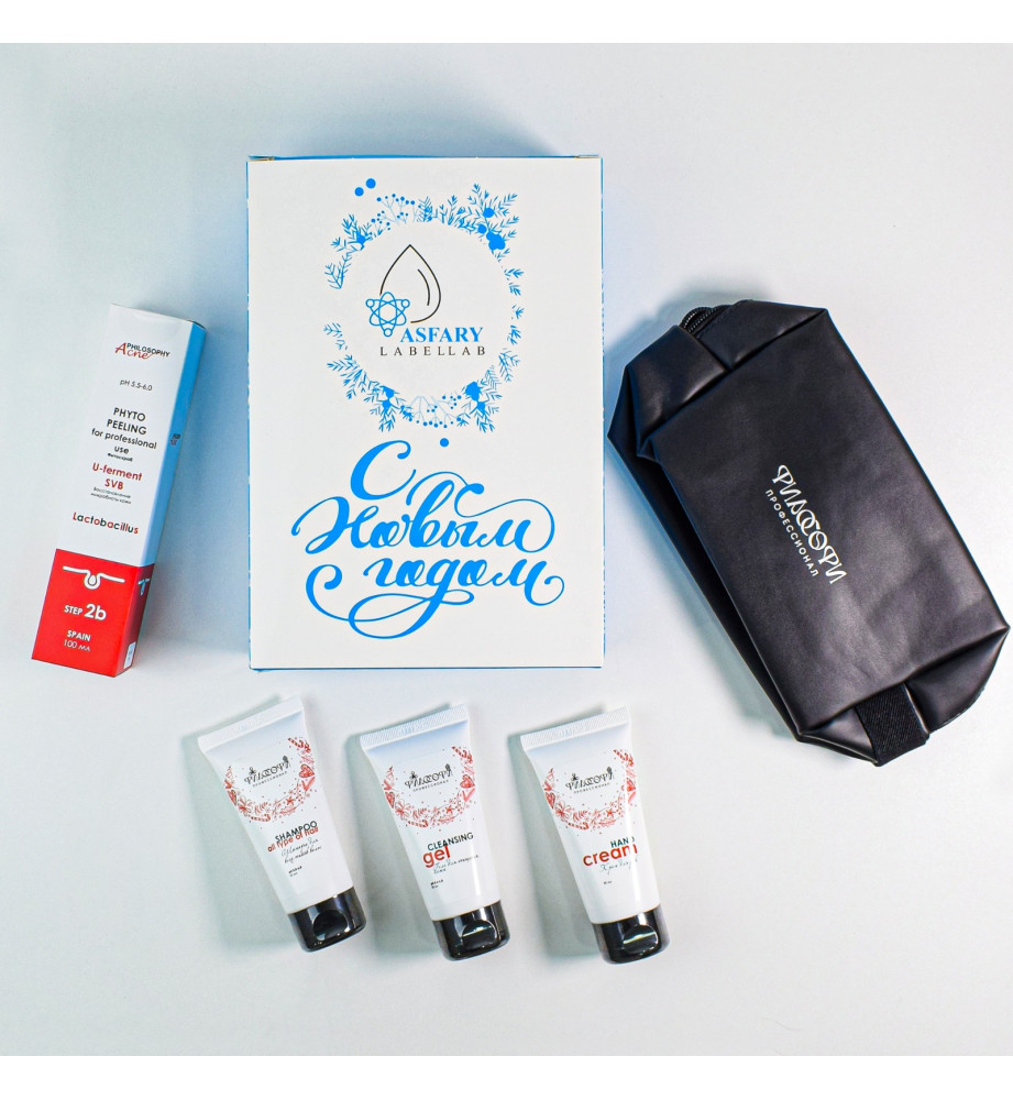 Philosophy Set New Year 2025 /  Подарочный набор: фитопиллинг, крем для рук, гель для умывания, шампунь и косметичка