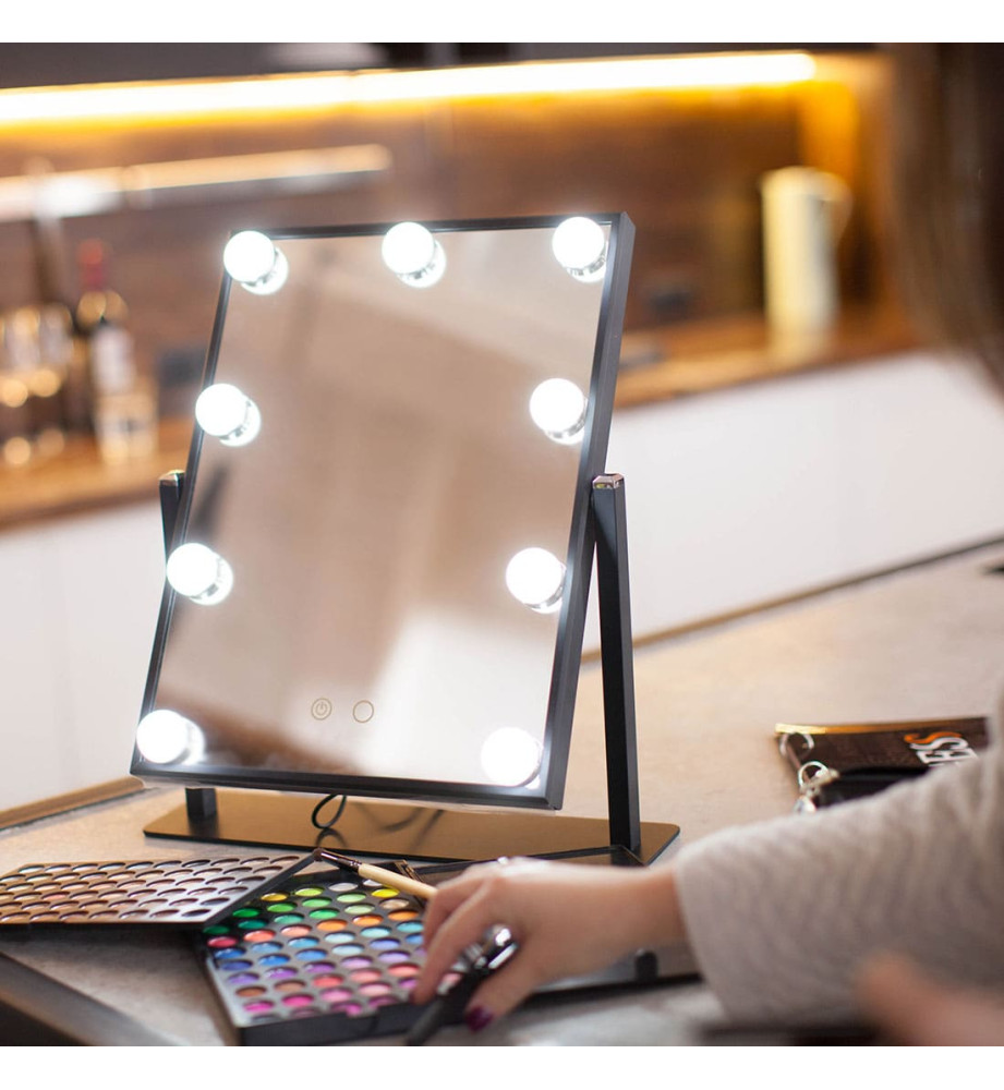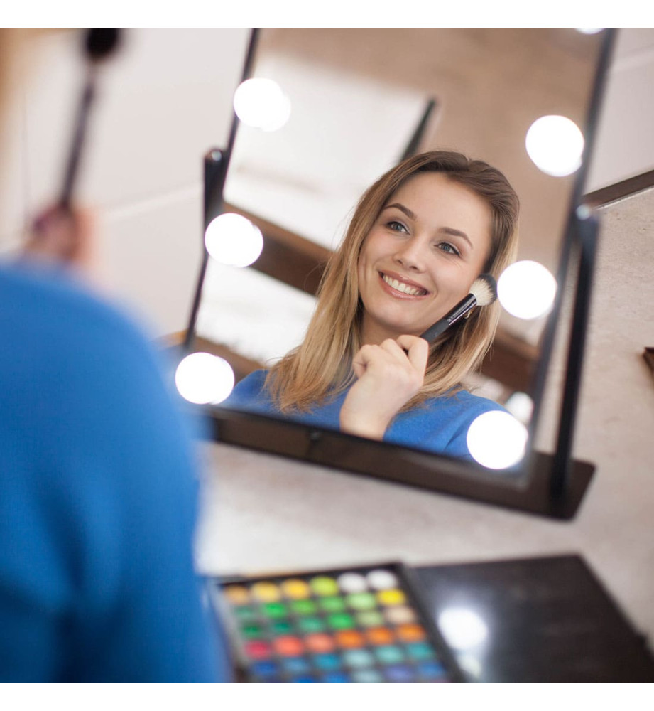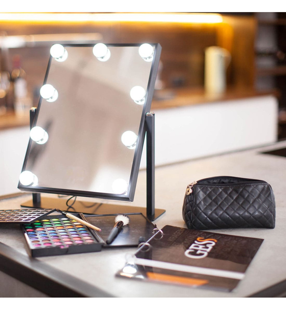 Профессиональное косметическое зеркало для макияжа uLike Maestro с подсветкой из 9 ламп. Идеально подойдет для профессиональных гримёрок, студий, салонов красоты. Это зеркало можно использовать и в домашних условиях, чтобы создать профессиональный макияж.
