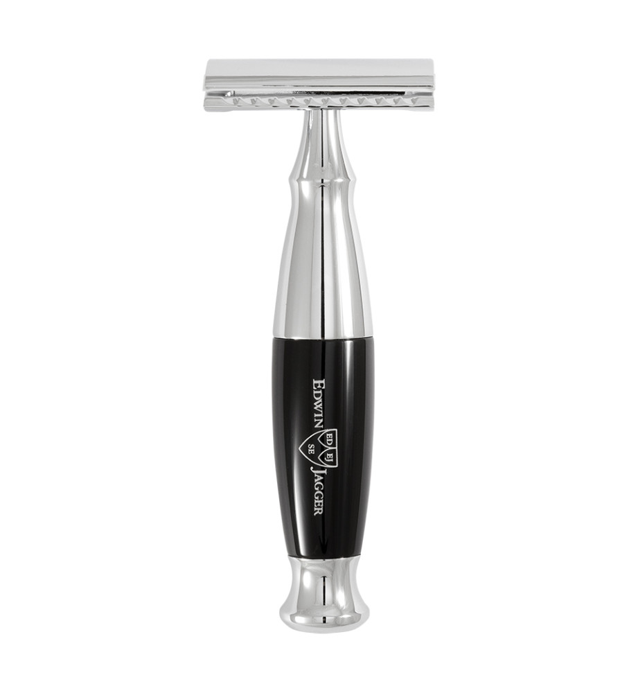 Edwin Jagger является передовым европейским производителем элитных бритв, изготовленных в Англии из первоклассных полиэфирных материалов с хромированной отделкой. Бритва имеет легкий вес и прекрасно сбалансирована, используется со стандартным двухсторонним лезвием. Поставляется в фирменной упаковке Edwin Jagger. Головка закрытого типа. Цвет ручки - черная смола.